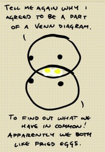 “For Children: You will need to know the difference between Friday and a fried egg. It’s quite a simple difference, but an important one. Friday comes at the end of the week, whereas a fried egg comes out of a chicken. Like most things, of course, it isn’t quite that simple. The fried egg isn’t properly a fried egg until it’s been put in a frying pan and fried. This is something you wouldn’t do to a Friday, of course, though you might do it on a Friday. You can also fry eggs on a Thursday, if you like, or on a cooker. It’s all rather complicated, but it makes a kind of sense if you think about it for a while.”